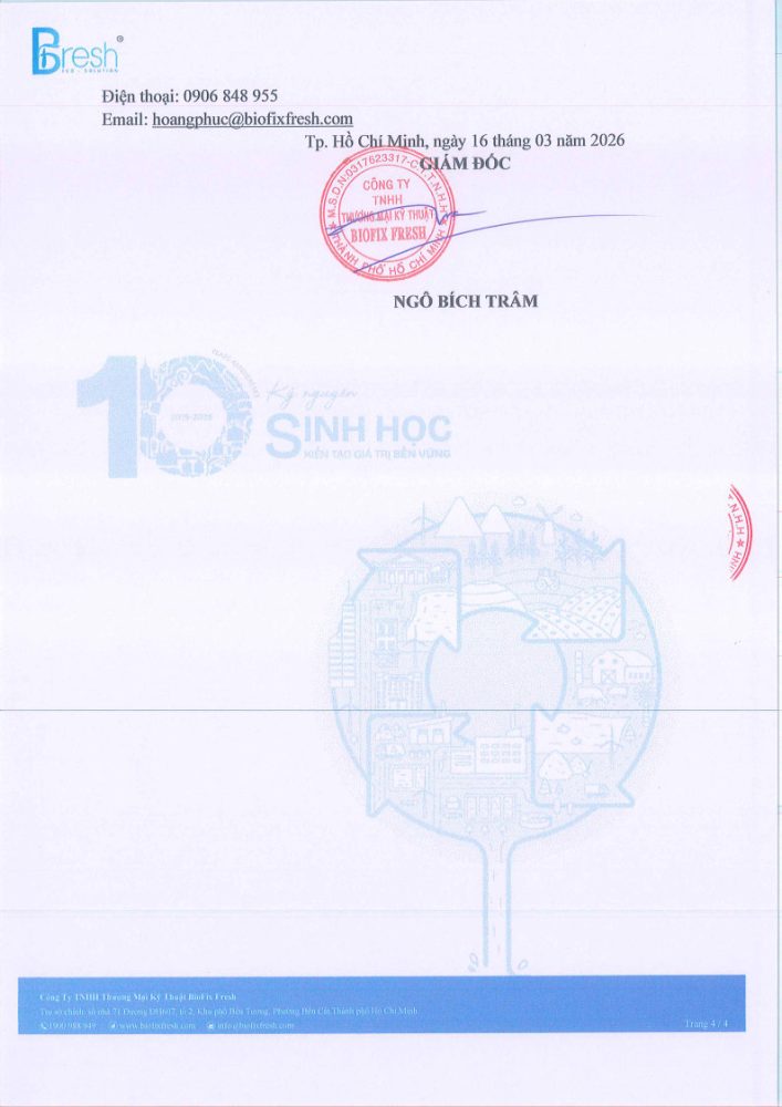 Lời đầu tiên, Công ty TNHH Thương mại Kỹ thuật BioFix Fresh (BioFix Fresh) xin gửi lời cảm ơn chân thành vì sự tin tưởng và đồng hành của Quý vị trong suốt thời gian qua.